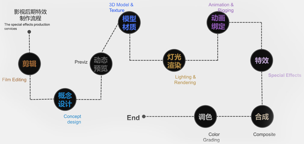 负责视频中的特效部分制作及特效部分的后期合成,对三维制作的特效难点进行测试并提供解决方案。